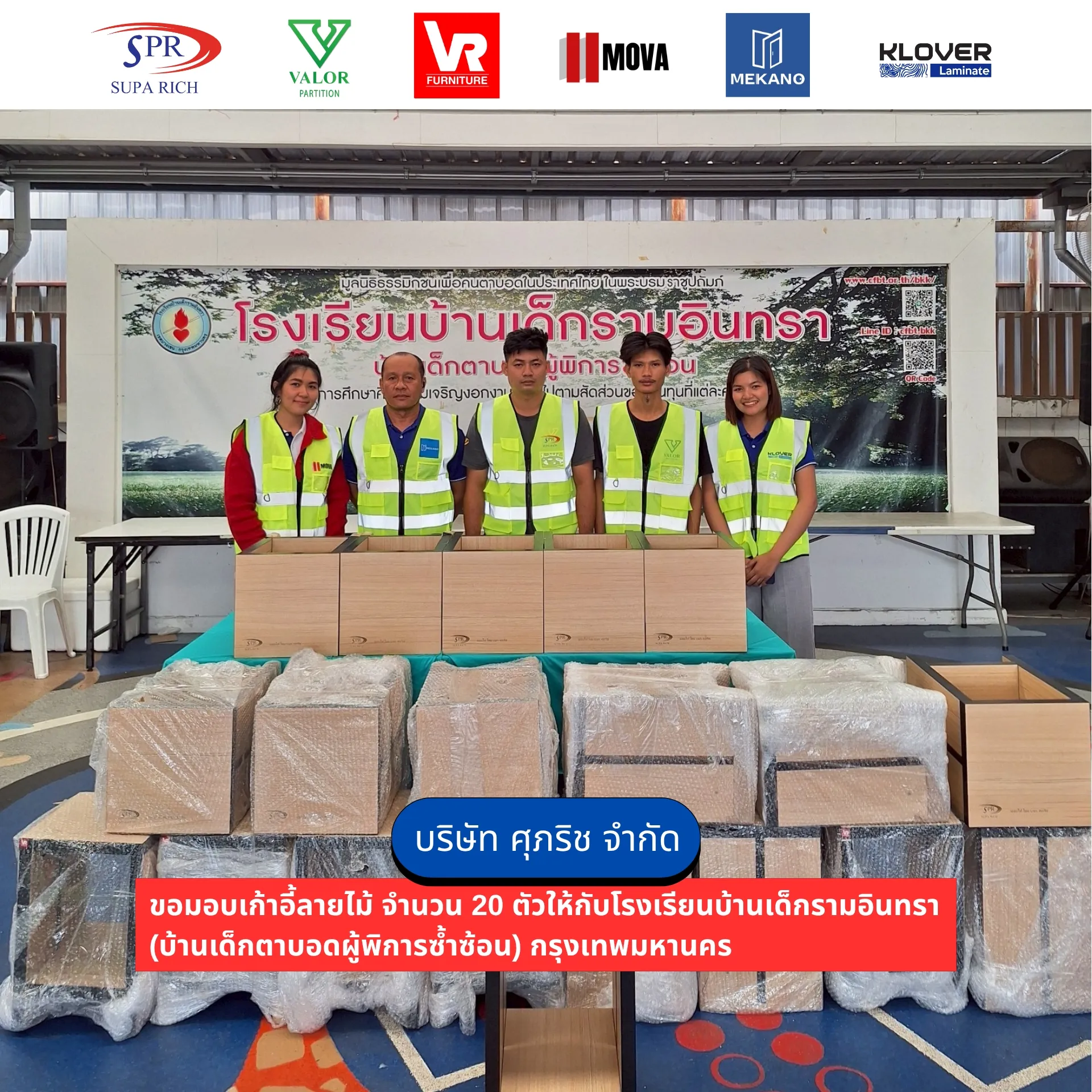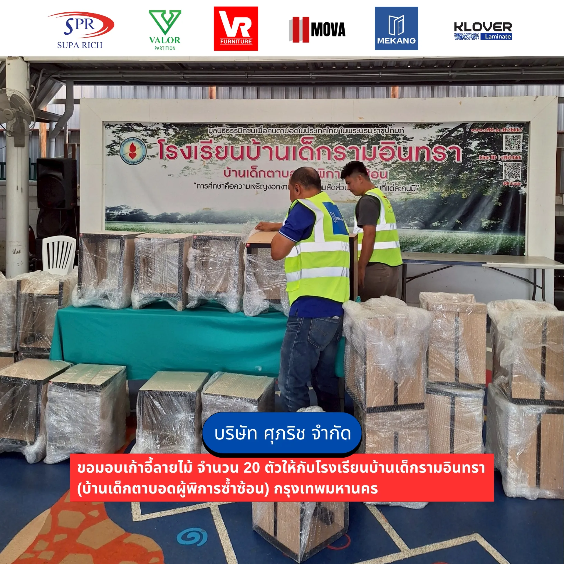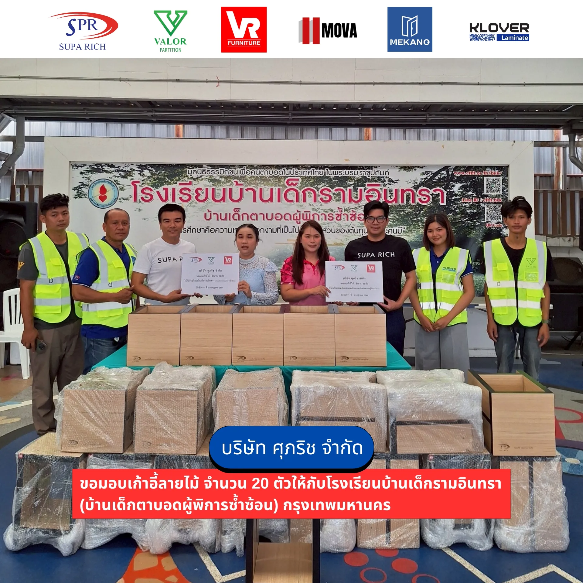 บริษัท ศุภริช จำกัด ขอเป็นส่วนหนึ่งในการส่งมอบความสุขและเติมเต็มโอกาสให้กับน้องๆ โดยการมอบเก้าอี้ไม้ให้กับ "โรงเรียนบ้านเด็กรามอินทรา" (บ้านเด็กตาบอดผู้พิการซ้ำซ้อน) กรุงเทพ
