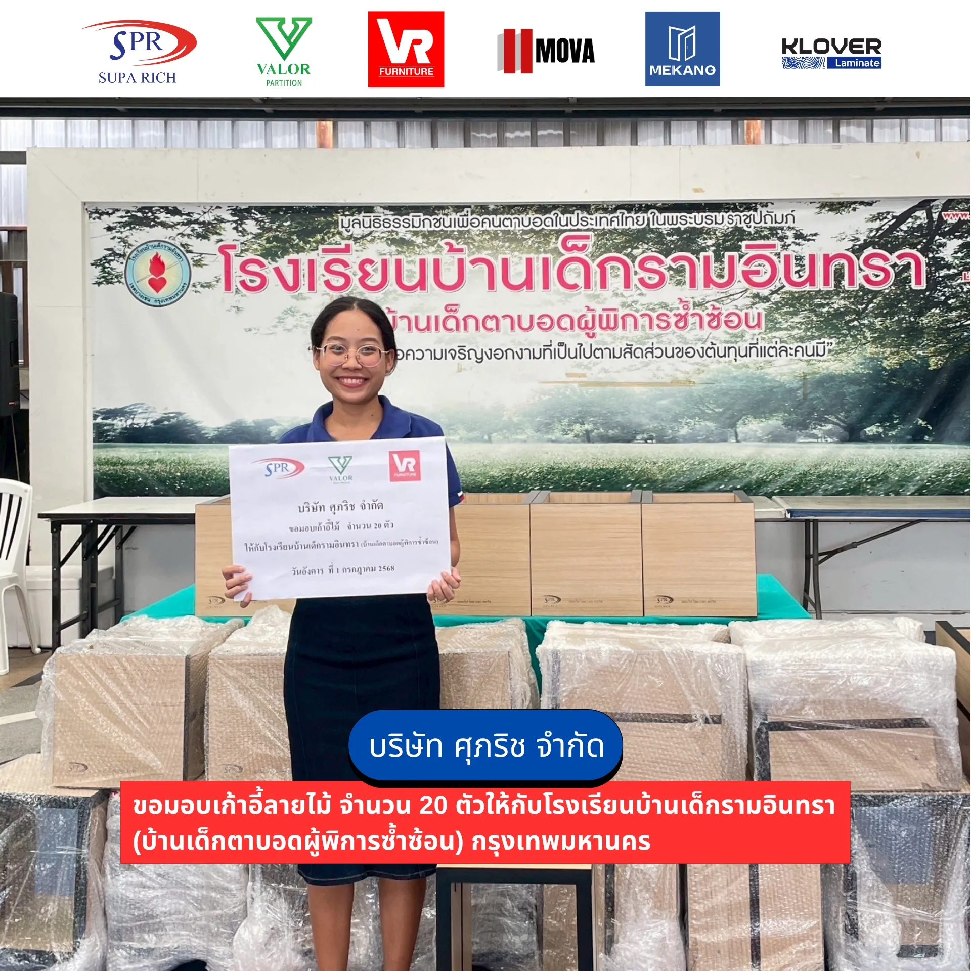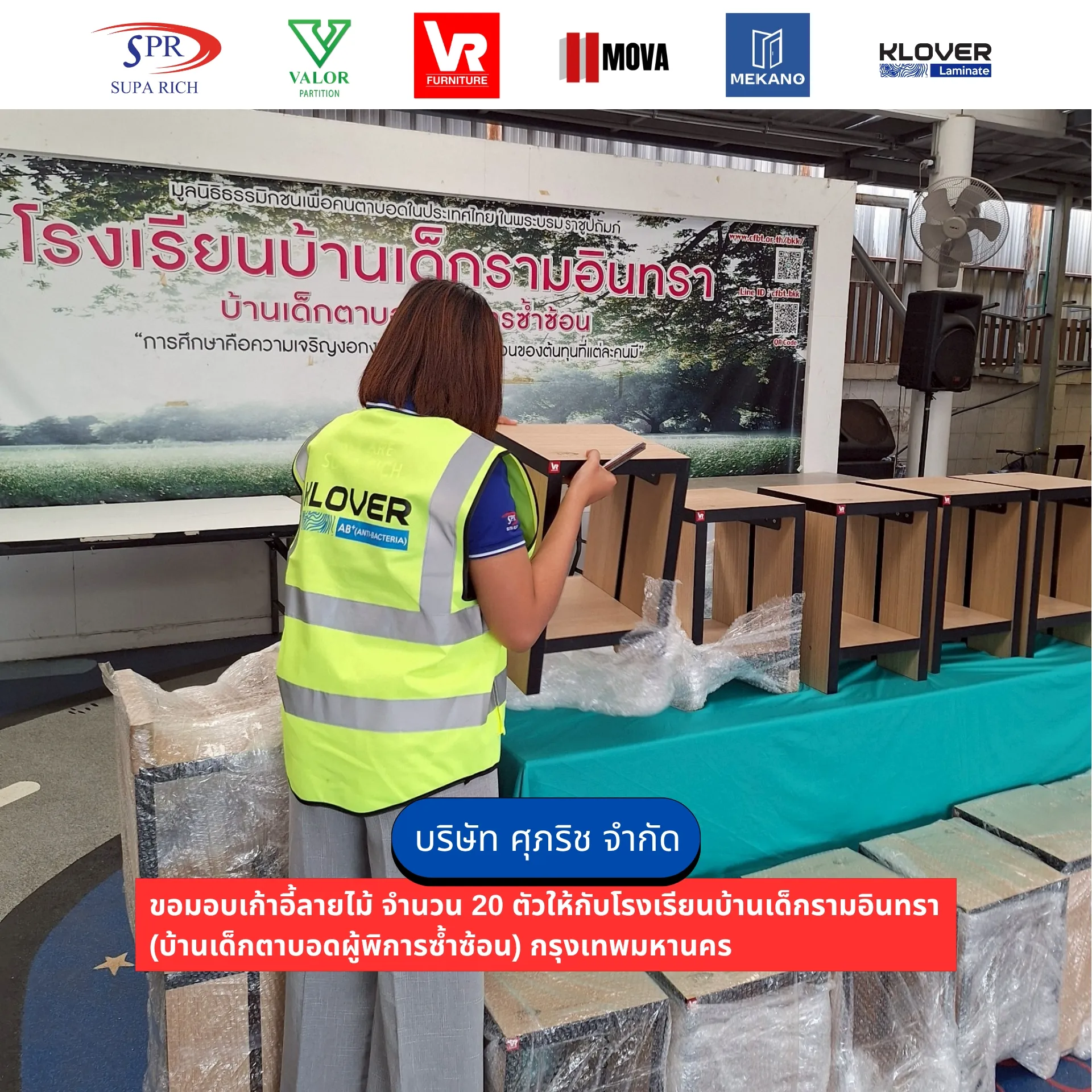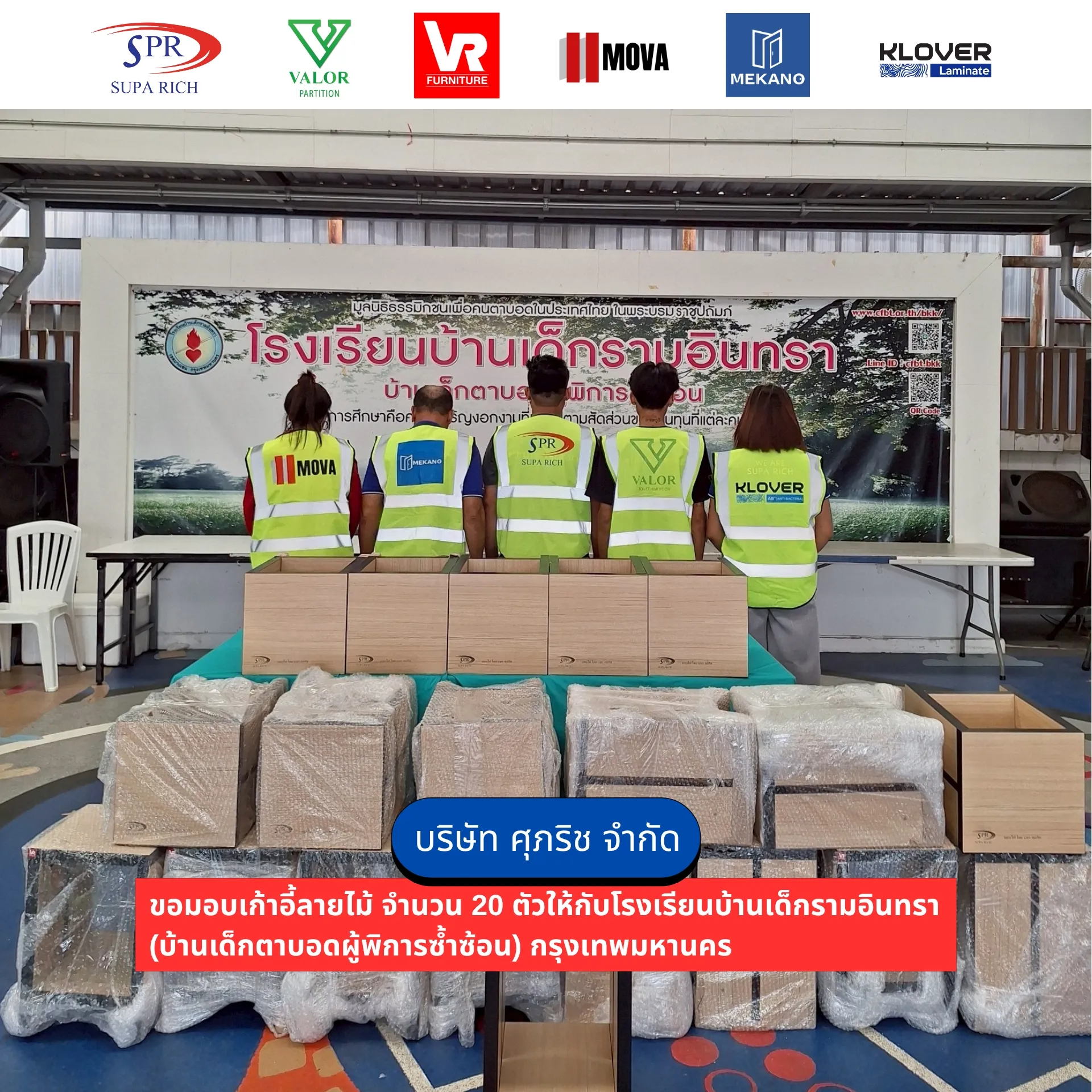 บริษัท ศุภริช จำกัด ขอเป็นส่วนหนึ่งในการส่งมอบความสุขและเติมเต็มโอกาสให้กับน้องๆ โดยการมอบเก้าอี้ไม้ให้กับ "โรงเรียนบ้านเด็กรามอินทรา" (บ้านเด็กตาบอดผู้พิการซ้ำซ้อน) กรุงเทพ