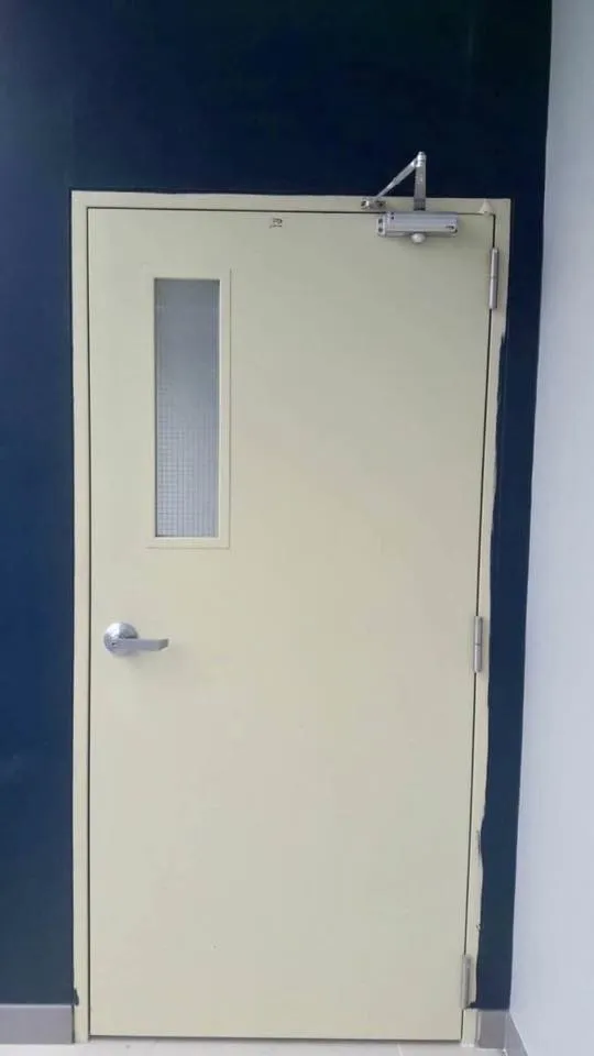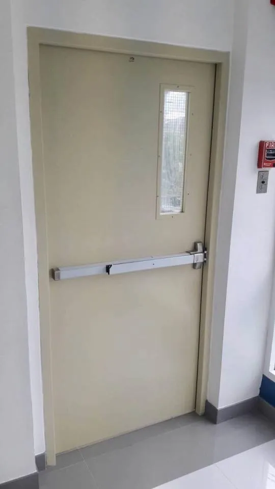 ประตูเหล็กทนไฟ SPRแบบบานเดี่ยว มีช่องกระจก พร้อมอุปกรณ์ SPR