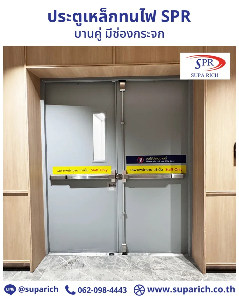 ประตูเหล็กทนไฟ SPR บานคู่ มีช่องกระจก
