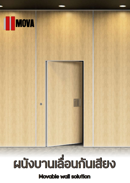 • ระบบซีลลิ่ง (Sealing Mechanism): หัวใจของการกันเสียงคือระบบซีลที่ขอบด้านบนและด้านล่างของแผงผนัง เมื่อปิดผนัง แผงซีลจะ